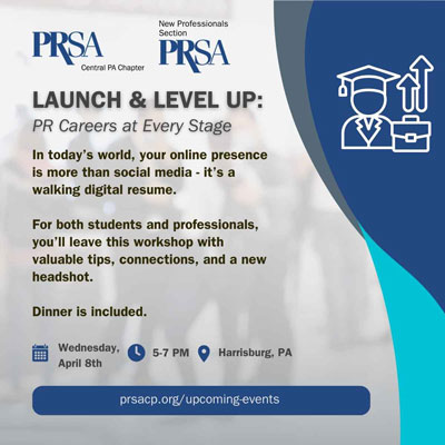 The cost, which includes dinner, is $20 for PRSA Central PA members, $30 for non-members and $5 for students.